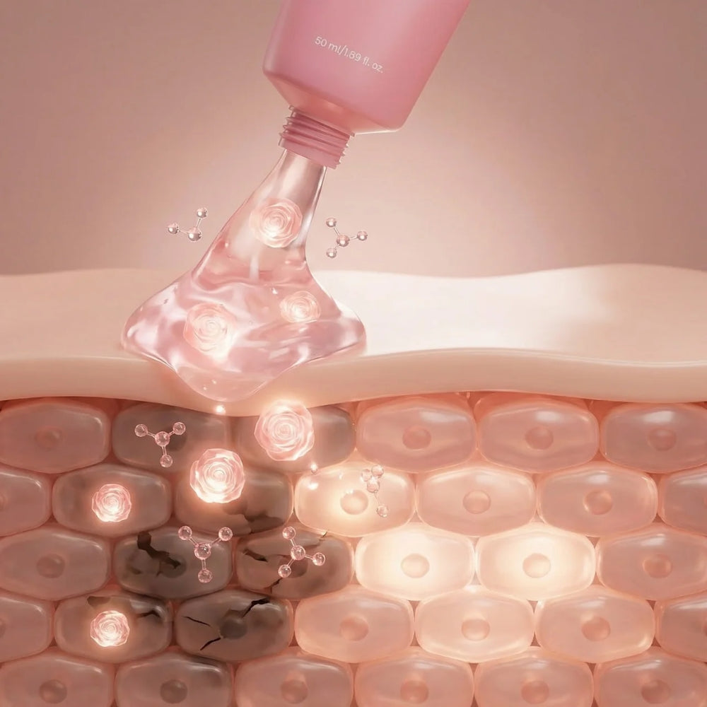 Standard moisturizers only hydrate the surface. RosePep is a bio-active recovery treatment that uses peptides to signal your skin to repair itself, fade marks, and rebuild a healthy barrier from within.